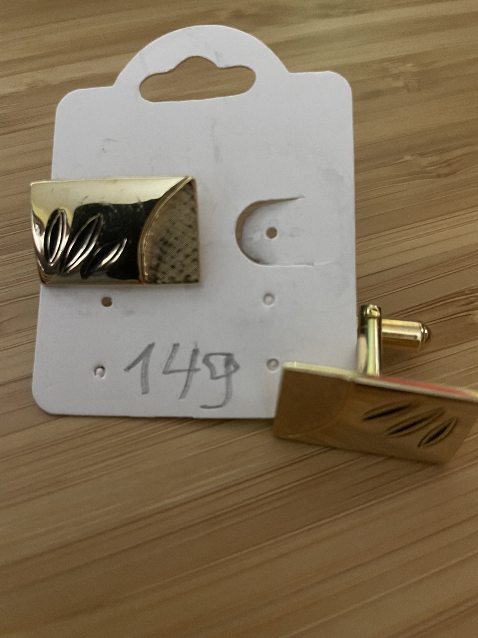 | 149 |  | 115,00 | Par de abotoaduras em metal dourado detalhes em baixo relevo |
