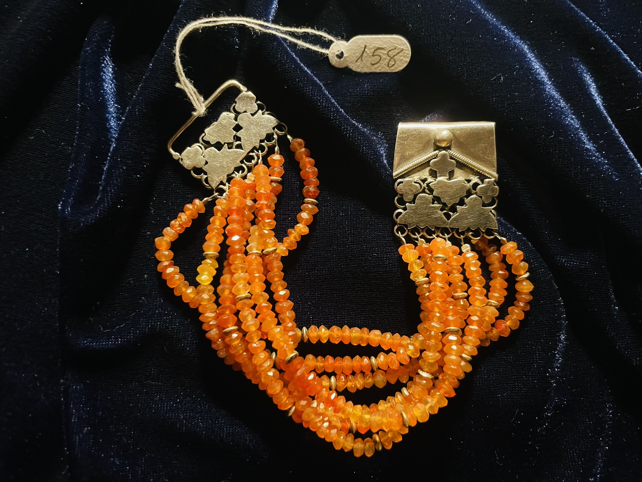 | 159 |  | 65,00 | Gargantilha em miçangas pretas e douradas. |
