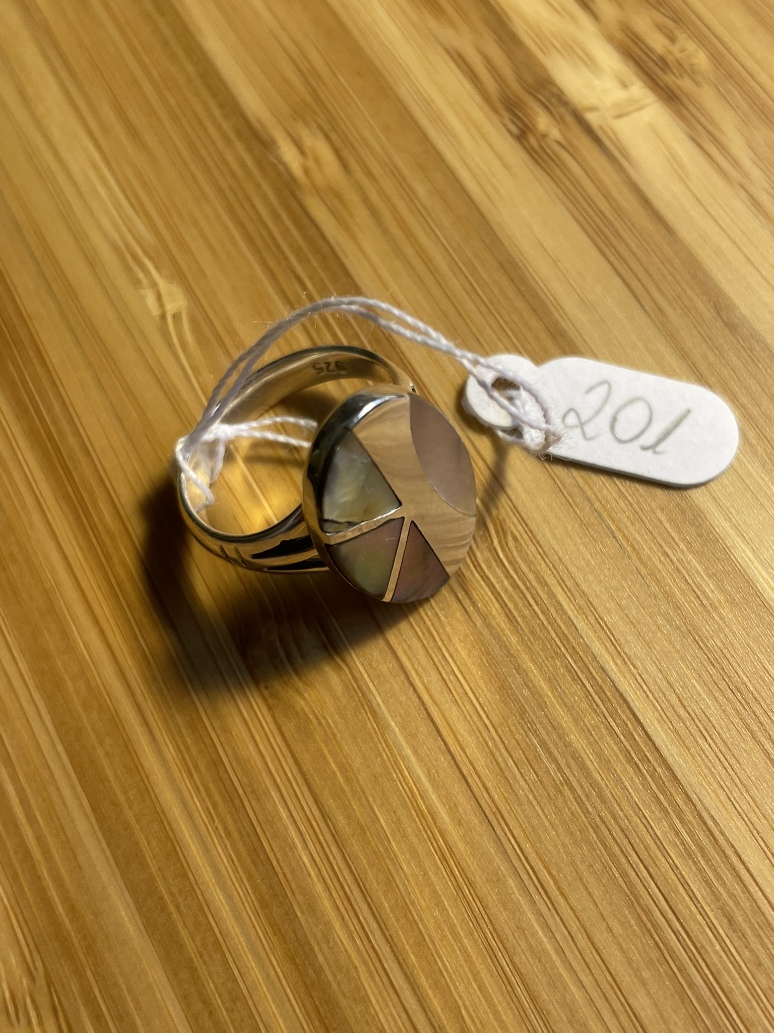 | 201 | | 560,00 | Anel em prata esterlina 925 com detalhes em madre pérola |